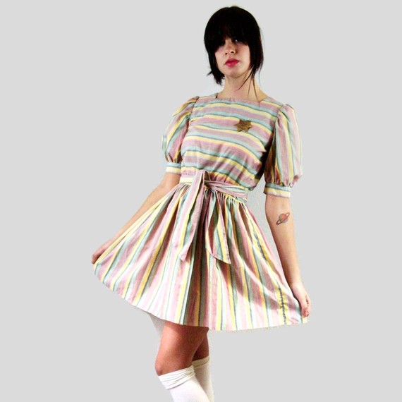 Vintage stripped dress( belt and pin included- medium to large) : 16.00$